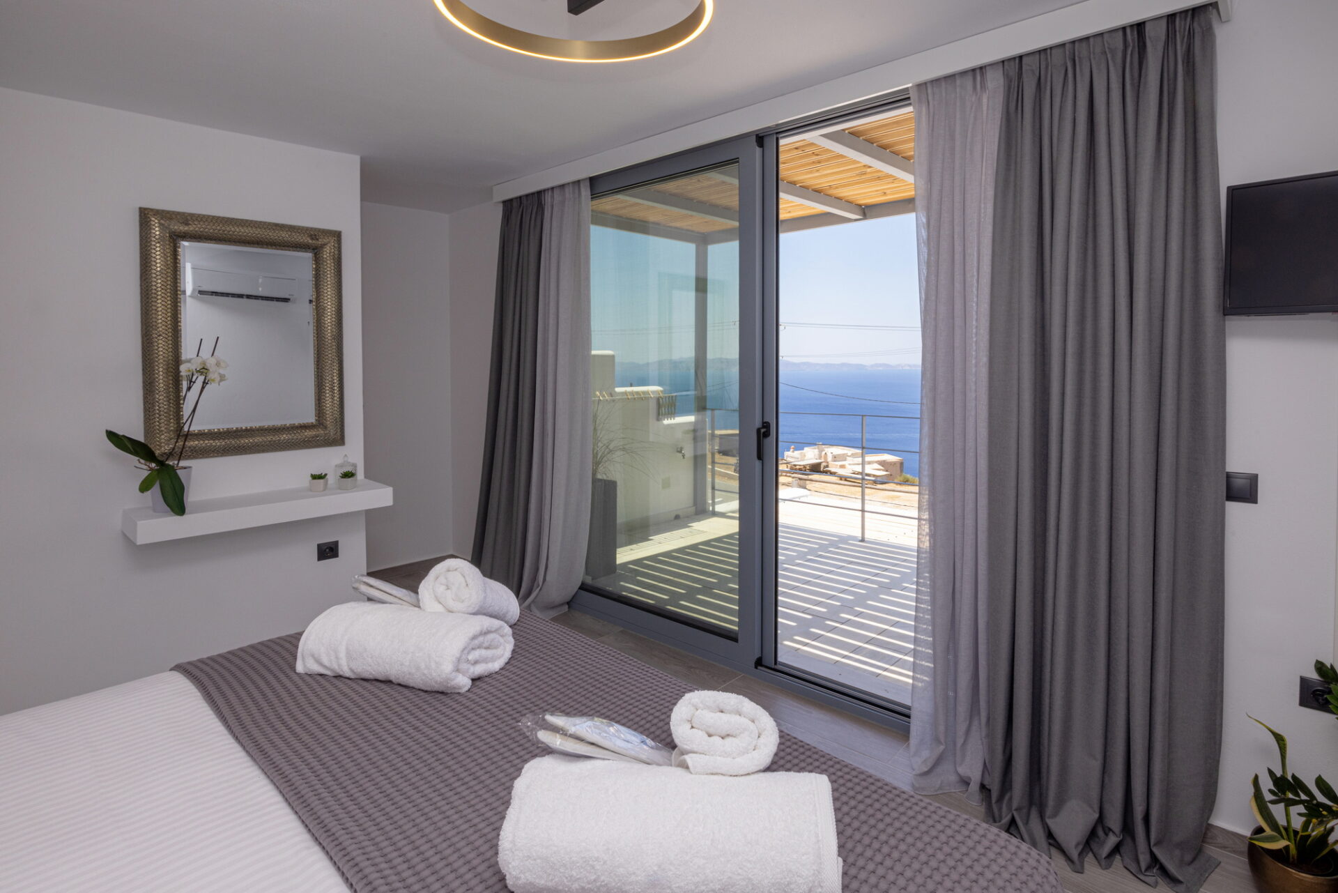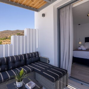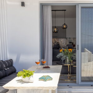 Απολαύστε την ανατολή ή το ηλιοβασίλεμα από το μπαλκόνι ή τη βεράντα σας με ανεμπόδιστη θέα στη θάλασσα. Χαλαρώστε στην αυλή ή απολαύστε τον καφέ σας στην ηρεμία που προσφέρει η ηχομόνωση του χώρου.